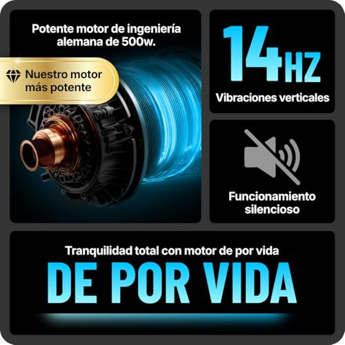 Cuenta con dos potentes motores bastante silenciosos con un rango de 180 niveles de velocidad. Esta plataforma vibratoria está recomendada tanto para principiantes como para atletas de élite.